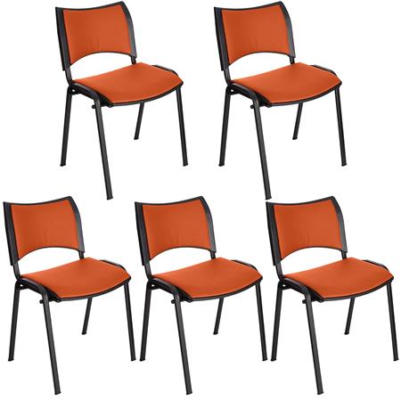 Im 5er-Set: Besucherstuhl ROMEL MIT ARMLEHNEN, bequeme Polsterung, stapelbar, schwarze Stuhlbeine, Farbe Schwarz
