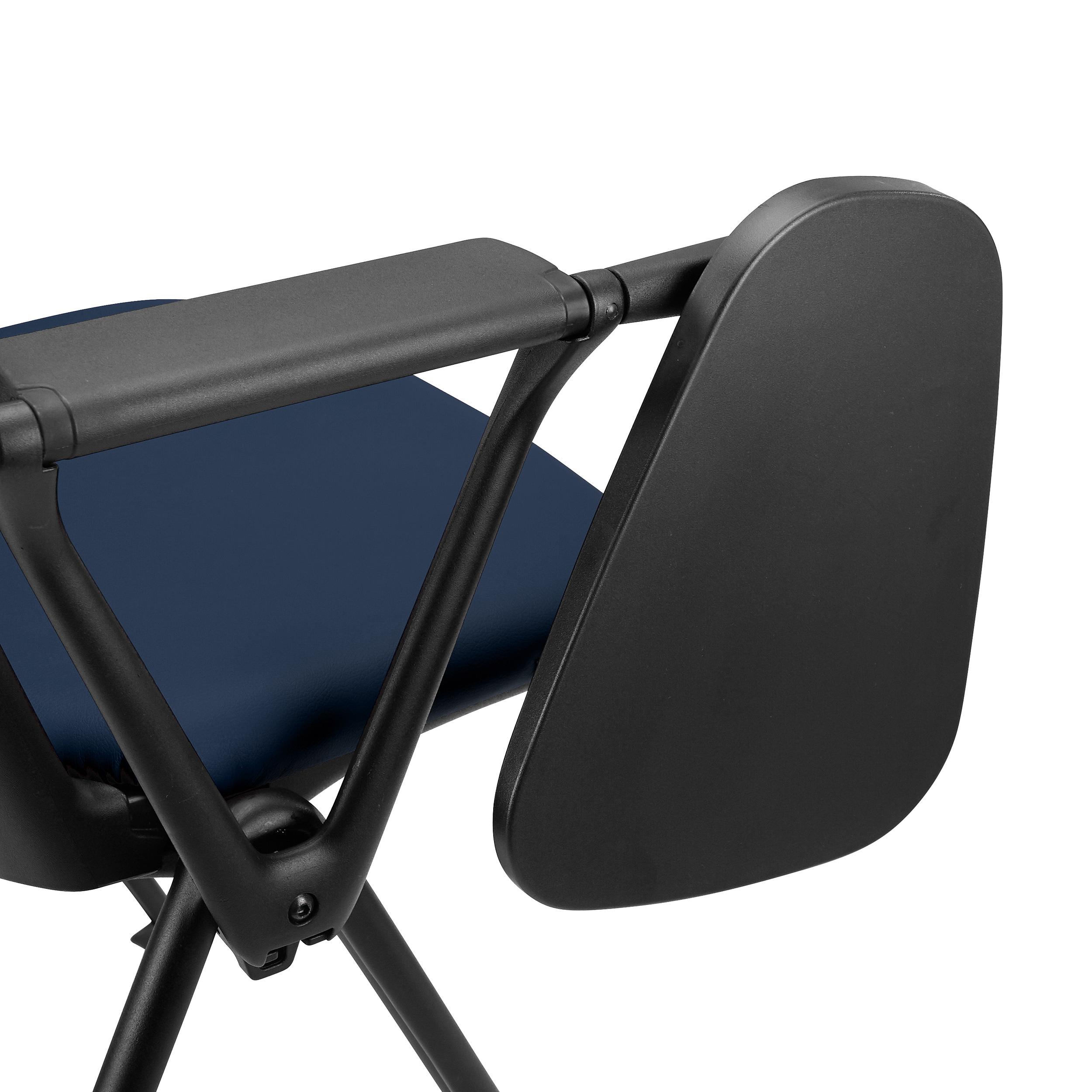 Im 5er-Set: Konferenzstuhl CARINA MIT SCHREIBBRETT, stapel- und reihenverbindbar, schwarzes Stahlgestell, Kunstleder, Farbe Blau
