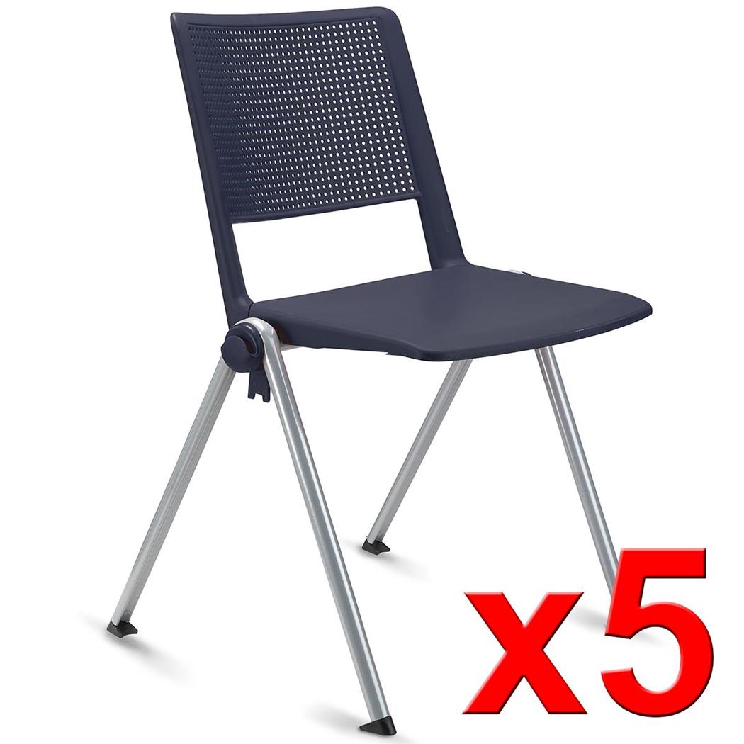Im 5er-Set: Konferenzstuhl CARINA, stapel- und reihenverbindbar, graues Stahlgestell, Farbe Blau