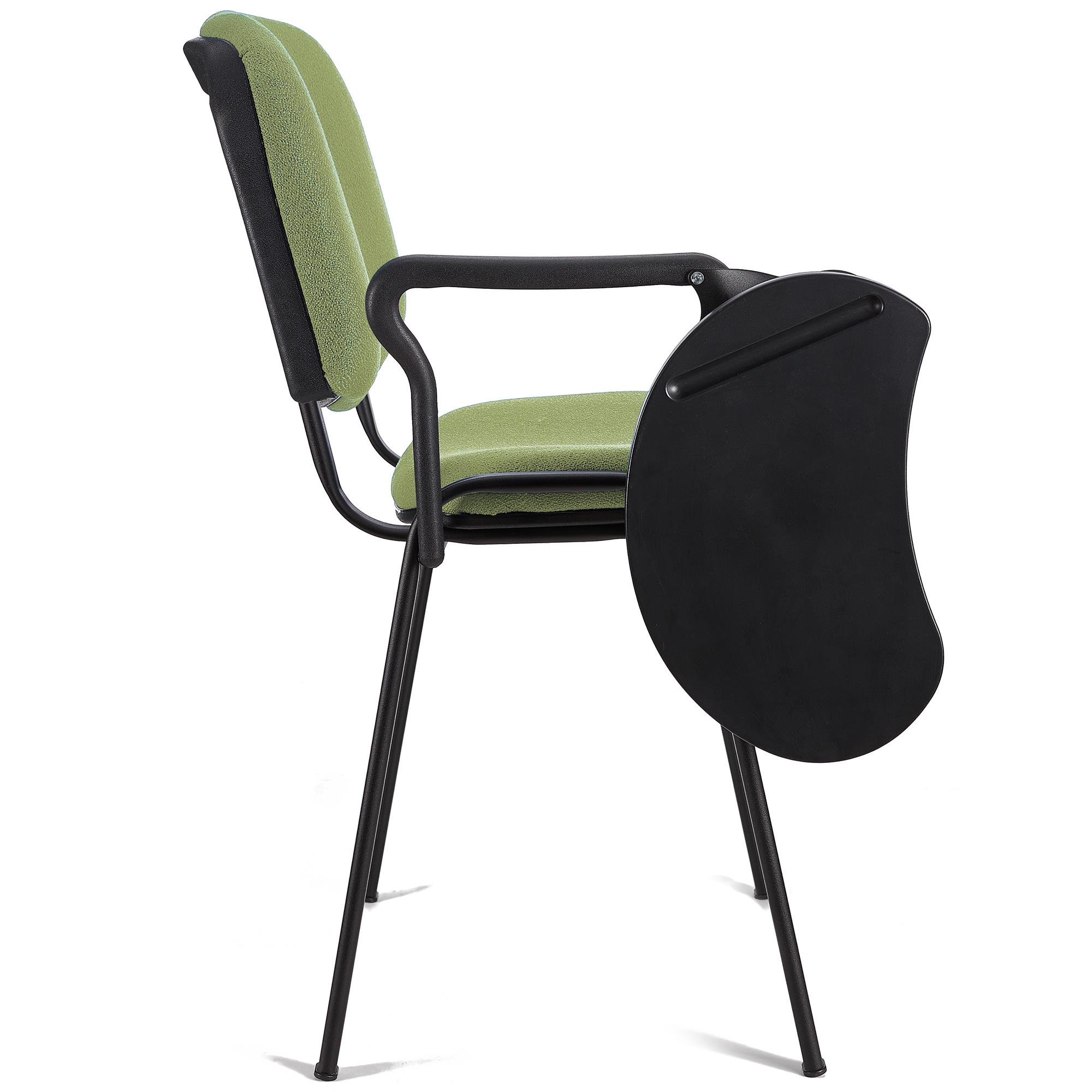 Im 5er-Set: Konferenzstuhl MOBY BASE STOFF mit klappbarem Schreibbrett, stapelbar und praktisch, schwarzes Gestell, Farbe Grün