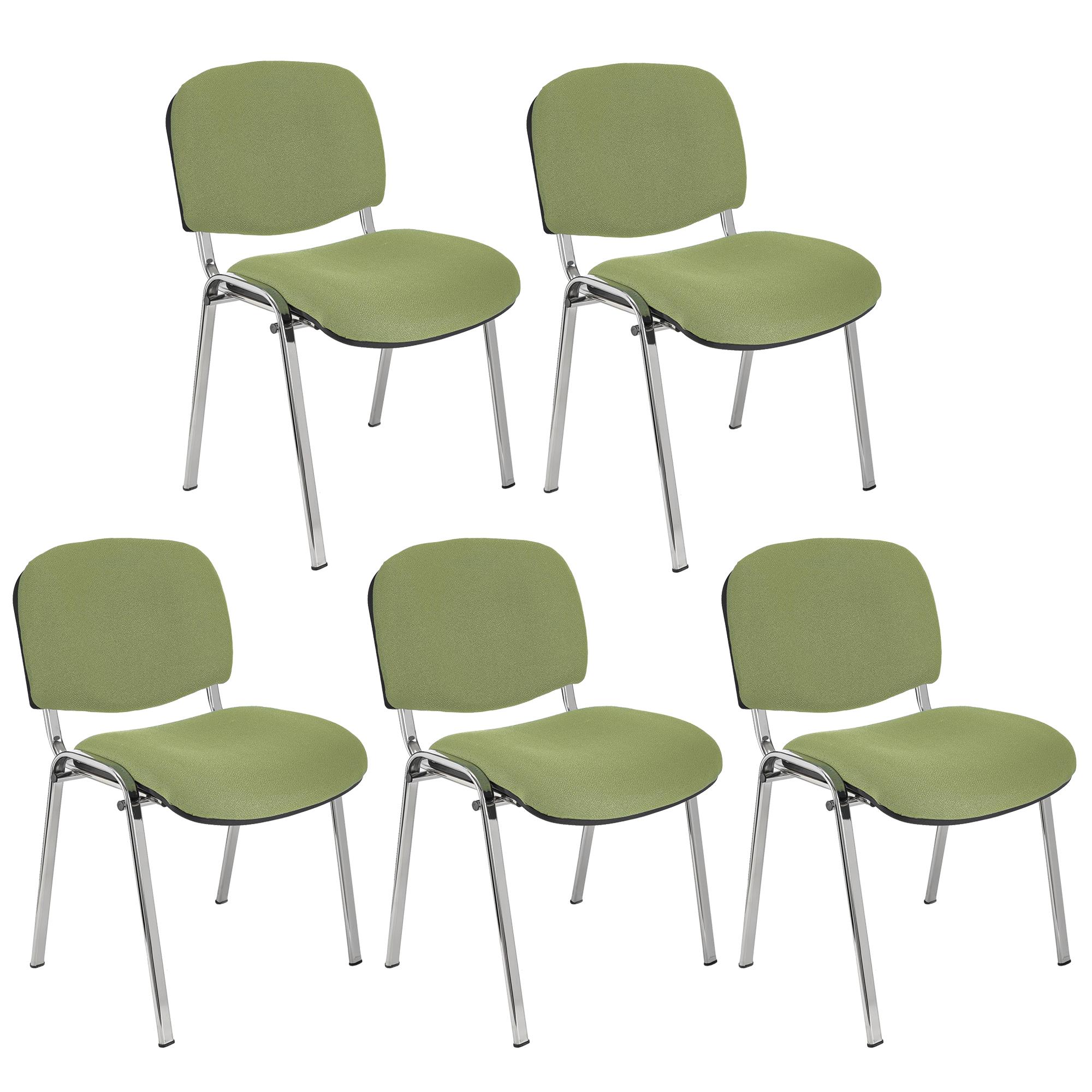 Im 5er-Set: Konferenzstuhl MOBY BASE STOFF mit verchromten Stuhlbeinen, bequem und praktisch, stapelbar, Farbe Grün
