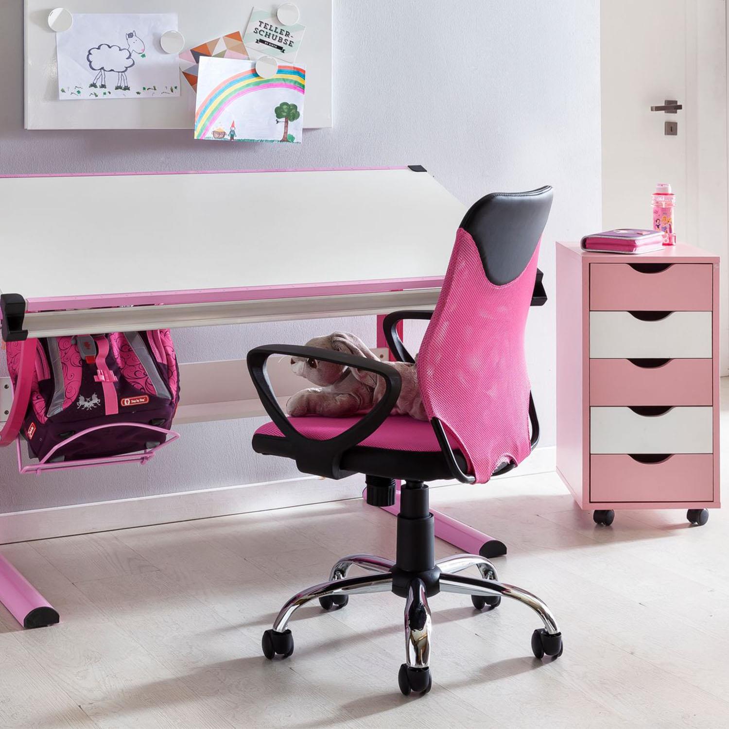 Kinderstuhl TAIPEI, Design Armlehnen, aus atmungsaktivem Netzstoff, Farbe Rosa
