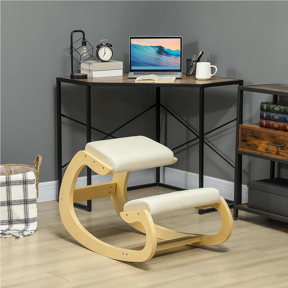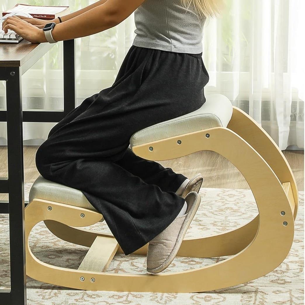 Dank seines ergonomischen Designs fördert dieser Stuhl eine besser ausgerichtete Rückenhaltung und hilft dabei, das Gewicht zwischen dem unteren Rückenbereich und den Beinen zu verteilen. Diese Haltung aktiviert sanft die Muskulatur und trägt dazu bei, den Druck auf den Lendenbereich zu verringern. Damit ist er eine ausgezeichnete Wahl sowohl für die Arbeit im Home Office als auch für das Studium, kreative Aufgaben oder sogar Meditation.
