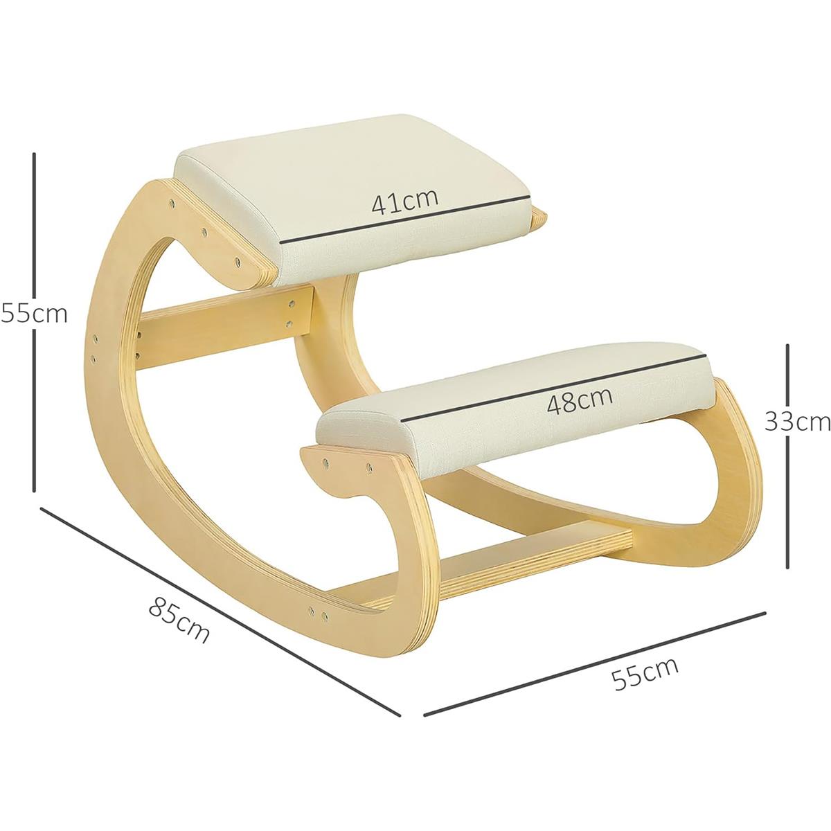 Kniestuhl YOSI, ergonomischer Hocker, bequeme Polster, Holzgestell mit Stoffbezug, Farbe Creme
