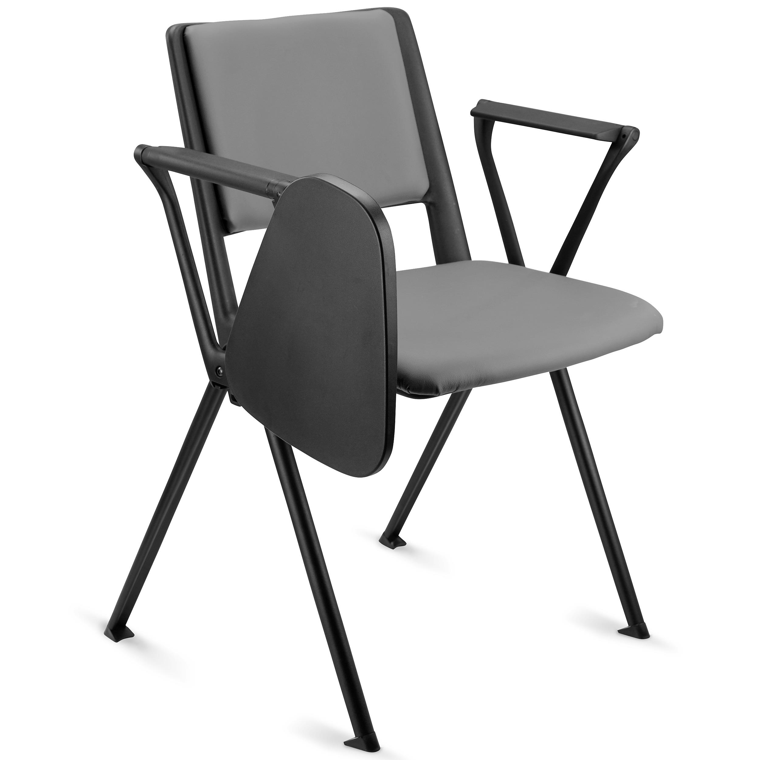 Konferenzstuhl CARINA MIT SCHREIBBRETT, stapel- und reihenverbindbar, schwarzes Stahlgestell, Kunstleder, Farbe Grau