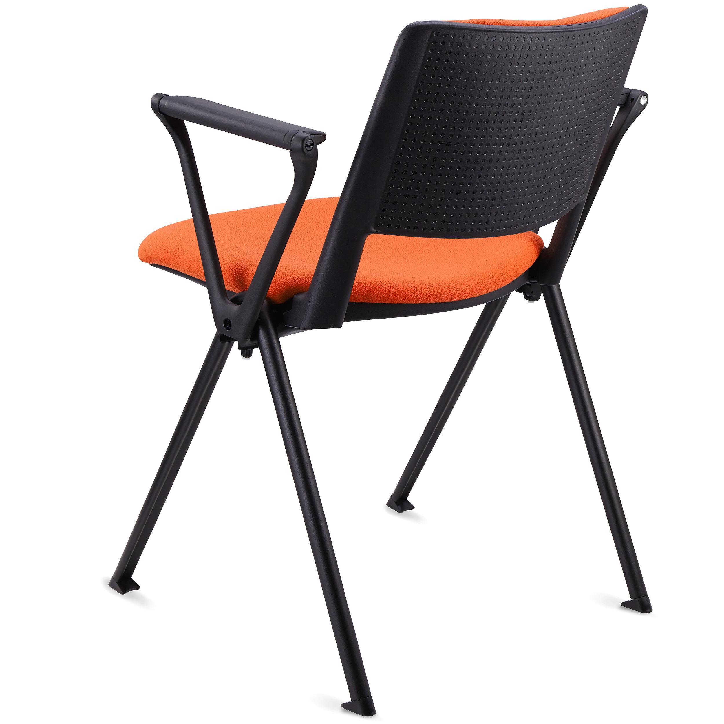 Konferenzstuhl CARINA MIT SCHREIBBRETT, stapel- und reihenverbindbar, schwarzes Stahlgestell, Stoffbezug Farbe Orange