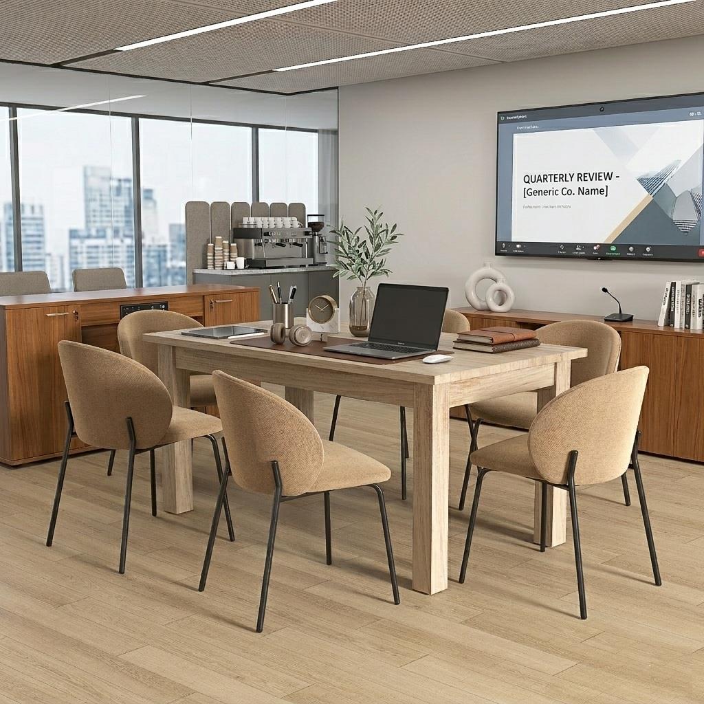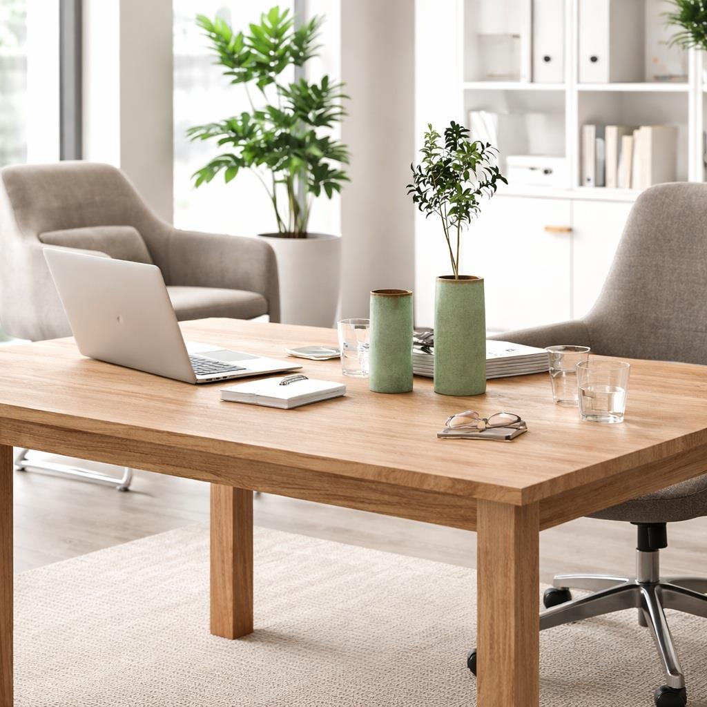 Wir präsentieren den Konferenztisch DILI, ein geräumiges und robustes Modell in hellem Holzfarbton, das nicht nur ein Möbelstück ist, sondern eine Designlösung für alle, die maximale Funktionalität suchen, ohne dabei auf Stil zu verzichten. Mit seinem warmen, natürlichen Farbton fügt er sich perfekt in jedes Büro oder jeden Besprechungsraum ein.