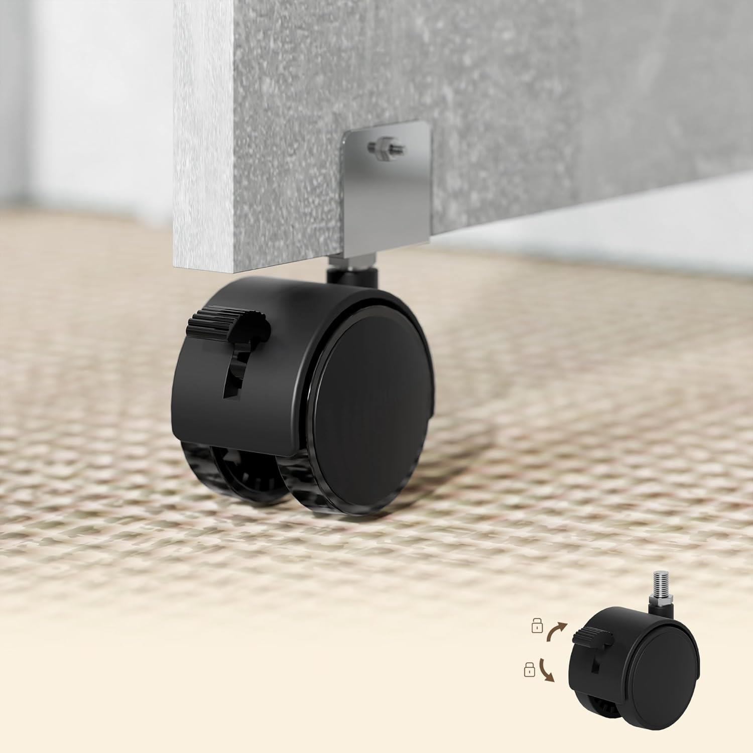Neben seiner flexiblen Bauweise überzeugt der Tisch auch durch praktische Details. Zwei zentrale Ablagefächer bieten zusätzlichen Stauraum für Unterlagen oder Zubehör. Für mehr Komfort und Stabilität ist das Modell außerdem mit zwei Rollen inklusive Feststellbremse ausgestattet, sodass es sich leicht bewegen und sicher fixieren lässt. Die Konstruktion aus hochwertigem Holz sorgt für Stabilität und Langlebigkeit, während das Design insgesamt leicht und zeitgemäß wirkt.