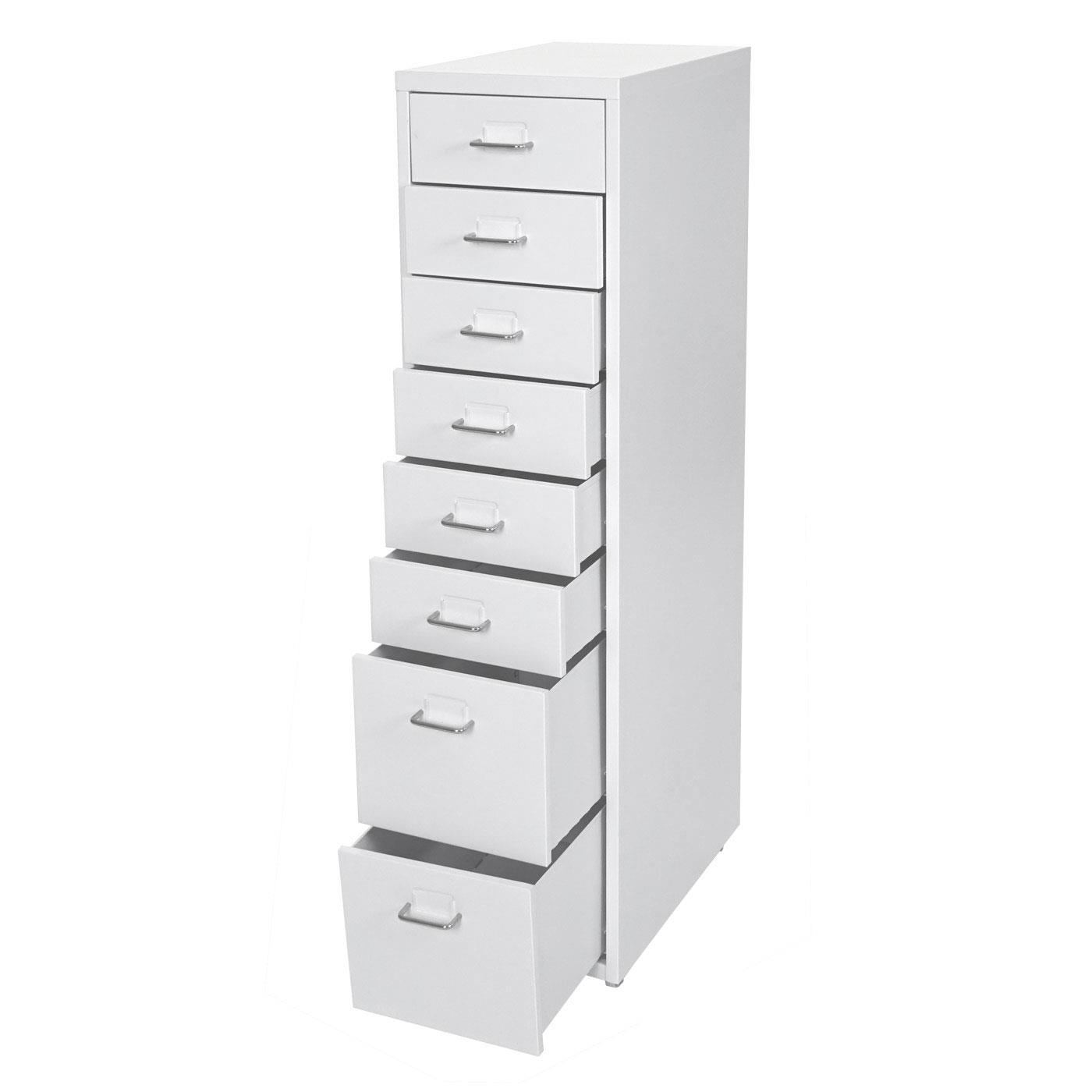 Rollcontainer HUTE, Büroschrank, 8 Schubladen, 109x28x44 cm, Stahlblech, Farbe Weiß