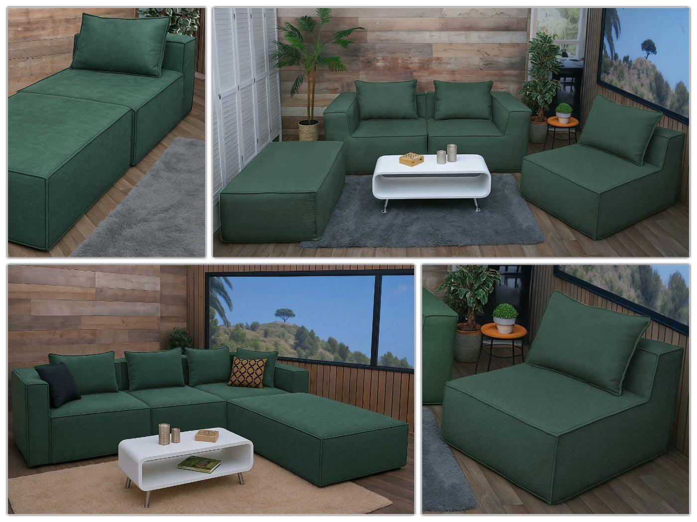 Die Module und Kissen sind vollständig abnehmbar und waschbar – ein praktisches Detail, das für dauerhafte Frische und Pflegeleichtigkeit sorgt. Der Bezug besteht aus einem weichen, atmungsaktiven und strapazierfähigen Stoff, der sich angenehm anfühlt und formstabil bleibt. Die Polsterung aus hochwertigem Schaumstoff passt sich ergonomisch Ihrer Körperform an und bietet erstklassigen Sitz- und Liegekomfort.