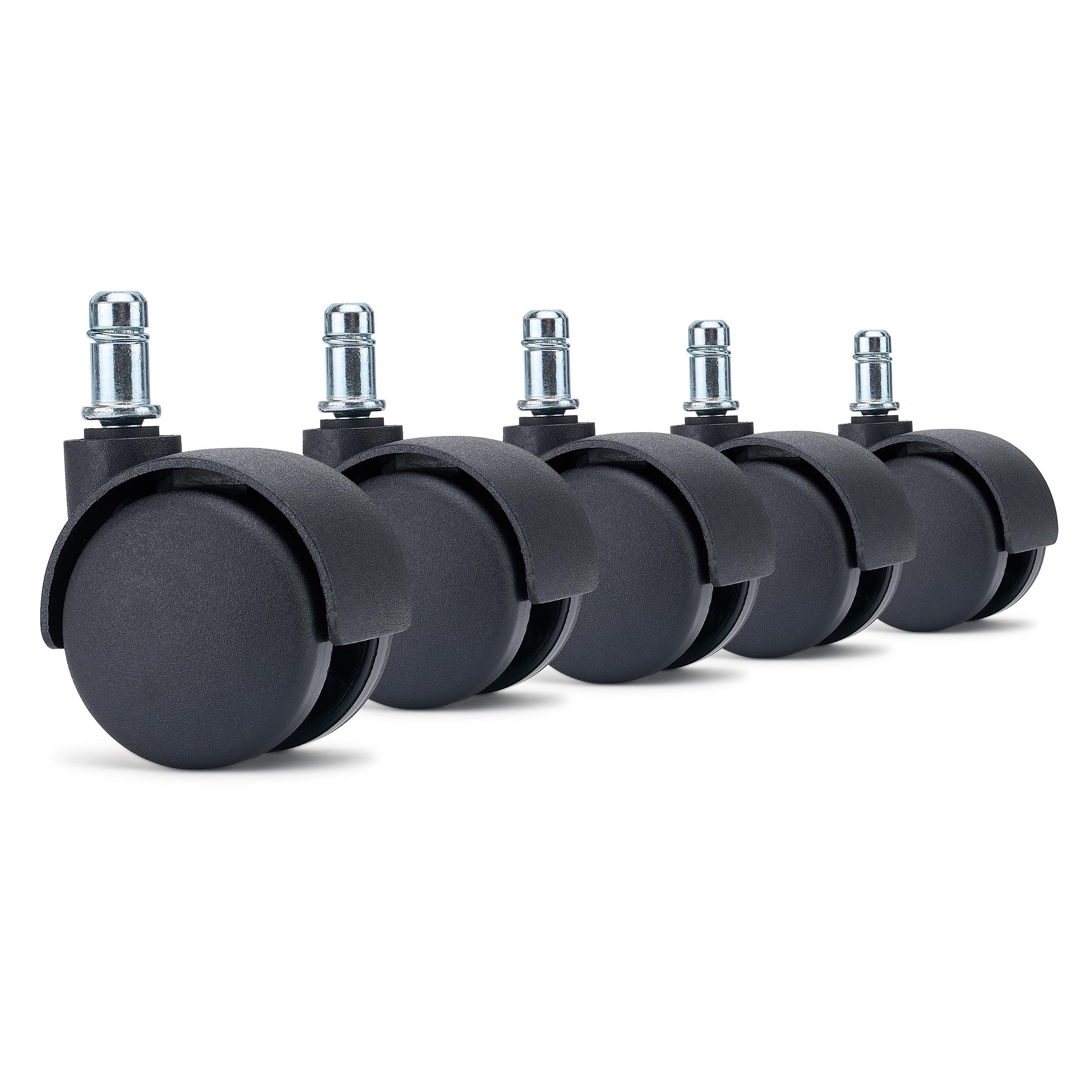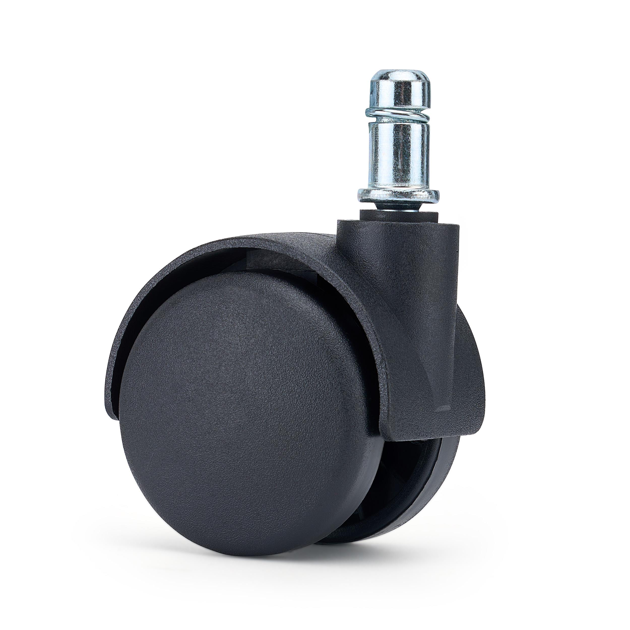 Die GEAR Teppichbodenrollen in klassischem Schwarz sind die ideale Ergänzung für Bürostühle auf Teppichböden. Mit einem 60 mm Rollendurchmesser und 11 mm Standardstift passen sie auf die meisten gängigen Bürostuhlmodelle und sorgen für ein ruhiges, gleichmäßiges Rollen.